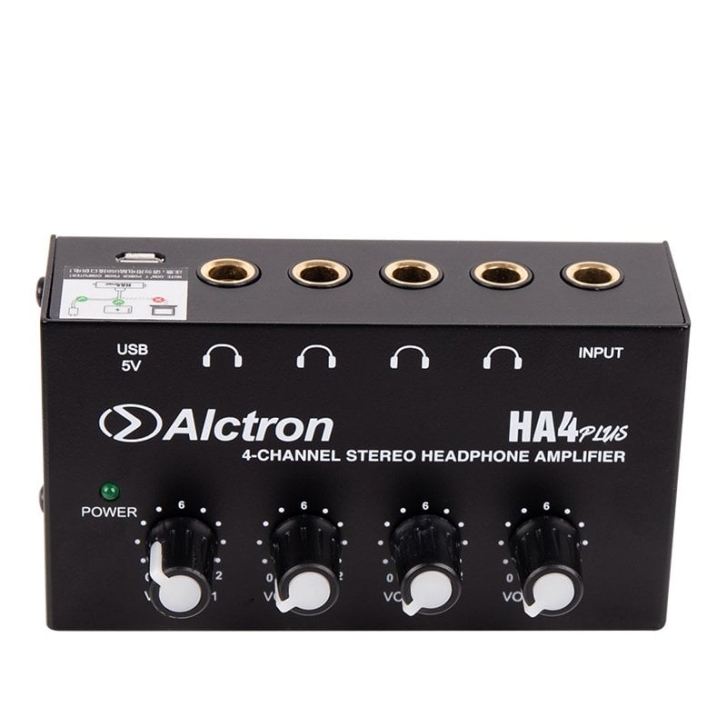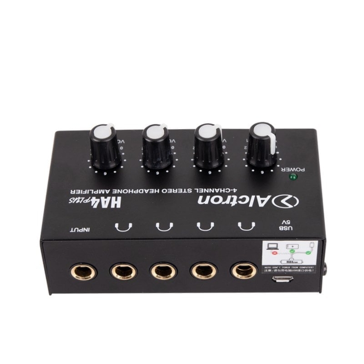 HA4 PLUS mini kulaklık amplifikatörü, tek bir stereo sinyalini dört kulaklık çıkışına böler. Benzersiz devre, zorlu bir ortamda bile birinci sınıf ses sağlar. Her kanal, etkileşim olmaksızın kendi seviye kontrolüyle birlikte gelir. USB güç kaynağı tasarımı, PC, telefon şarj cihazı, banka şarj cihazı vb. İle çalıştırılmasına izin verir. Yüksek kaliteli çelik kasa, aşırı dayanıklılık sağlar.