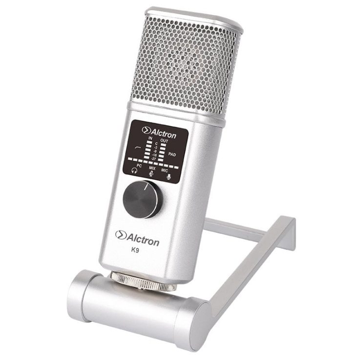 K9, mikrofonun performans hızını artırmasına yardımcı olan 24 bit/192 khz örnekleme hızı çipine sahip bir USB mikrofondur. Kardioid polar deseni, doğrudan PC'nize, Mac'inize, iPhone'unuza veya iPad'inize dramatik, stüdyo kalitesinde ses sunar. Hacim ayarlı, kazanç ayarlı, hassasiyet ayarlı ve alçak kesim işlevini tek bir düğmede birleştirir. Geniş ekran giriş/çıkış sinyal seviyesini gösterir, ilgili işlevi ayarlamak için düğmeye basmanız ve değiştirmeniz yeterlidir. Elektrik geldiğinde logo ALCTRON beyaz ışık yakar.