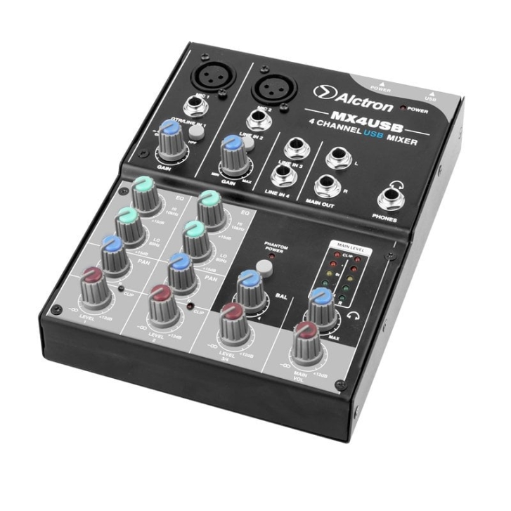 MX4USB, yerleşik bir USB dijital ses arabirimine sahip dört kanallı bir masaüstü mikseridir. Ana çıkış seviyesini görsel olarak izlemek için iki kanallı, beş aşamalı, çok renkli LED metreye ve stereo, 1/4' kulaklık çıkışına sahiptir. kendi seviye kontrolü. MX4USB kompakt mikser, temel bilgisayar kayıt kurulumlarında, video düzenleme ve prodüksiyon stüdyolarında ve taşınabilir podcasting kurulumlarında kullanım için mükemmeldir çünkü yalnızca hat seviyesinde analog ses değil, aynı zamanda stereo 16-bit, 44.1 kHz dijital çıkış verir. düşük gürültülü, kolay bilgisayar bağlantısı için USB üzerinden ses.Aynı USB bağlantısı üzerinden bilgisayarınızdan da izleyebilirsiniz.