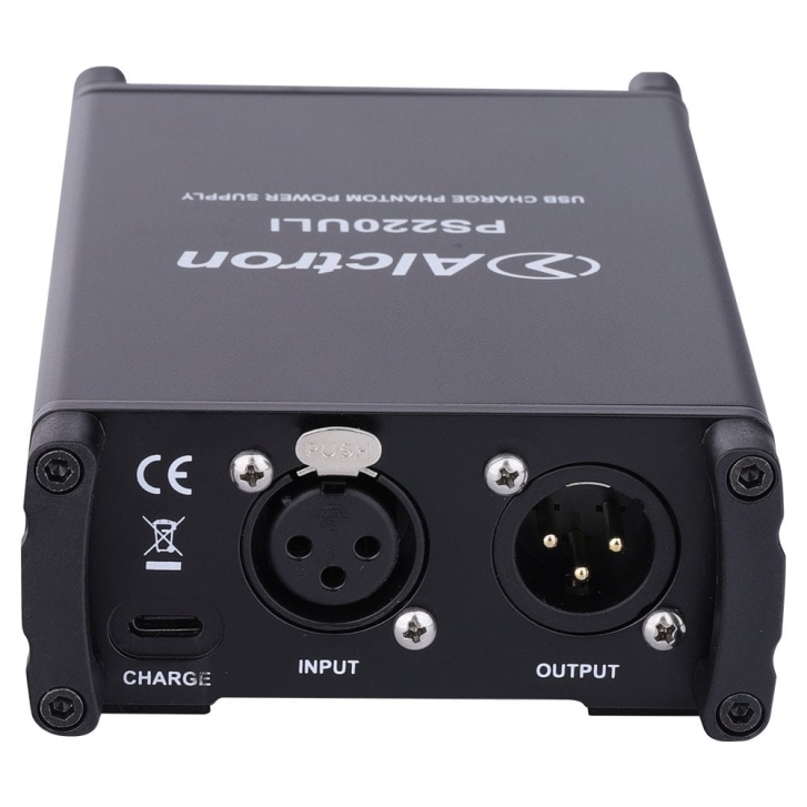 PS220ULI, 3.7V lityum ile çalışan bir USB 48V fantom güç kaynağıdır. PC USB konektörü, telefon şarj cihazı ve banka şarj cihazı ile şarj edilir. Çeşitli güç kaynağı PS220ULI'nin kullanımını kolaylaştırır. Profesyonel devre tasarımı, AC sinyalinin parazitini etkili bir şekilde filtreleyebilir ve harici ses ekipmanının parazit gürültüsünü koruyabilir. PS220ULI, yoğunlaştırıcı mikrofona saflık ve sabit fantom gücü sunar (veya diğer cihazların 48V fantom gücüne ihtiyacı vardır). Yerleşik hassasiyeti ve düşük kesme anahtarları, ortam gürültüsünü ve düşük frekanslı gürültüyü azaltır.