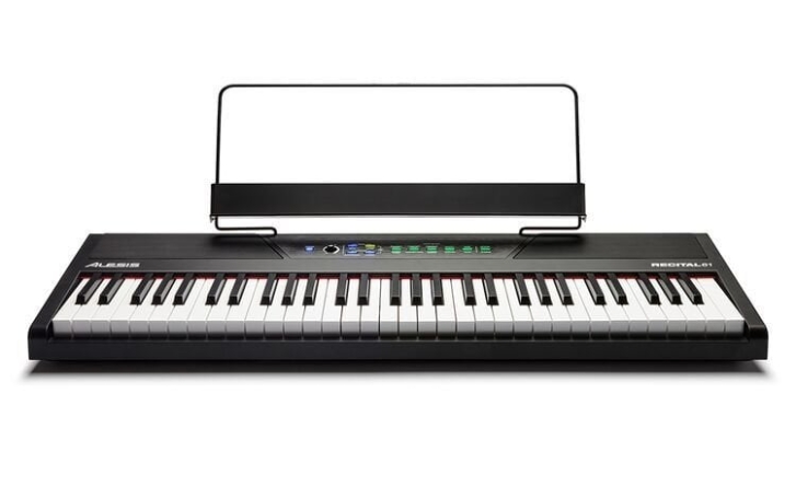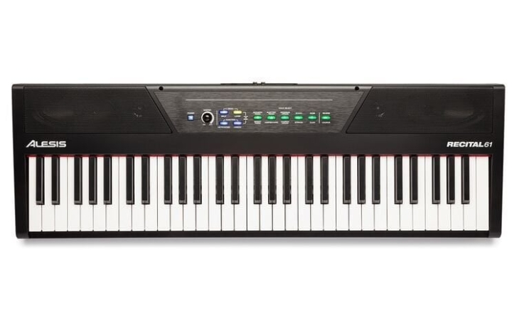 Alesis Recital, 61 tam boyutlu yarı ağırlıklı tuşları güçlü 20 watt yerleşik hoparlörler ve 128 nota maksimum not polifonisi ile birleştiren tam özellikli bir dijital piyanondur.