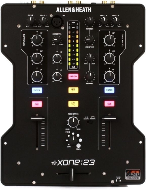 Xone: 23, Normalde Rezonans Kontrolü, Vca Fader'Ları, 3 Bantlı Toplam Öldürme Efsanevi Xone Filtresinin Geliştirilmiş Bir Versiyonu Da Dahil Olmak Üzere, En Beğenilen Bir Kulübün Kabininde Bulunan Pro Özelliklerle Dolu 2 + 2 Kanallı Bir Dj Mikseridir. Eq, Aydınlatmalı Anahtarlar, Crossfader Eğrisi Seçici Ve Stil Xone:Db4 Amiral Gemisinden Esinlendi.
