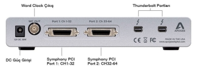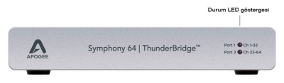 96 kHz/32 buffer ile 1.8 ms.'lik bir gecikme ile çalışabilen Apogee Symphony 64 | ThunderBridge en geniş projelerde dahi problemsiz ve gecikmesiz çalışmayı garantilemektedir. Kimin için ? Symphony 64 | ThunderBridge arabirimi, en yüksek kanal sayısı, en düşük gecikme ve en yüksek kaliteyi isteyen audio profesyonelleri için en uygun çözümdür. Göze çarpanlar Tüm Thunderbolt portlu Mac'ler için 64 Kanal Apogee giriş / çıkış imkanı 44.1 - 192 kHz çalışma imkanı Symphony I/O ve X-Symphony kartlı Rosetta 800, 200, AD16X ve DA16X ile uyumlu 96 kHz/32 buffer ile 1.8 ms. gecikme Ek cihazlar bağlayabilmek için 2 Thunderbolt portu 2 adet PC-32 portu ile Apogee arabirimlerine bağlanma DC giriş - 12V DC 30 Watt (Güç kaynağı ile birlikte) Tüm core audio uygulamaları ile uyumlu.