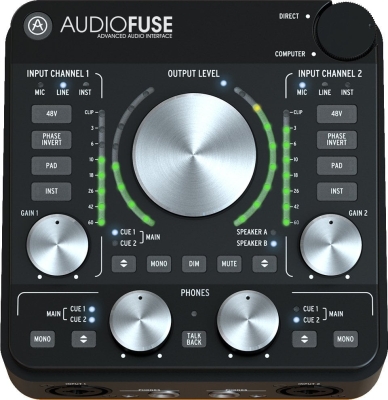 Arturia AudioFuse V2 iş akışını, bağlantı imkanlarını, gecikmeyi ve ses kalitesini optimize etmek üzere tasarlanmış yeni nesil profesyonel bir USB ses kartıdır. Çok detaylı bir tasarım sürecinden geçmiş simetrik ses yolu tasarımlı AudioFuse 14 giriş / çıkışa ve günümüzün teknolojisi ile vintage mikserler arasındaki boşluğu kapatan DiscretePRO özellikli iki mikrofon preamplifikatörüne sahiptir. Dönüştürücüleri ve ileri saat devresi etkileyici bir şeffaflık ve ses kalitesinde büyük önem taşıyan hassas zamanlama sağlamaktadır. Tüm kontrollerin elinizin altında olması ve hiç bir menü üzerinden işlem yapmak zorunda kalmamanız AudioFuse'un kullanılmasını çok daha hızlı hale getirmektedir. Üzerinde bulunan bağlantı imkanları bulunduğu fiyat aralığında rakipsizdir. Eğer yeni nesil ve yüksek kaliteli bir ses kartı arıyorsanız artık daha fazla aramanıza gerek kalmadı