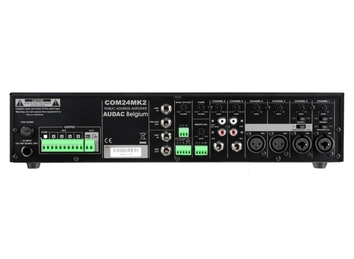 COM24MK2, yüksek güç çıkışı ve 100V sisteme uyumlu olmasıyla dikkat çeker. Güçlü amplifikatörü sayesinde yüksek ses seviyelerinde bile net ve güçlü bir ses performansı sunar. 100V sistemiyle uyumlu olması, geniş bir ses dağıtım ağı oluşturmanızı ve farklı alanlarda etkileyici ses yayını yapmanızı sağlar.