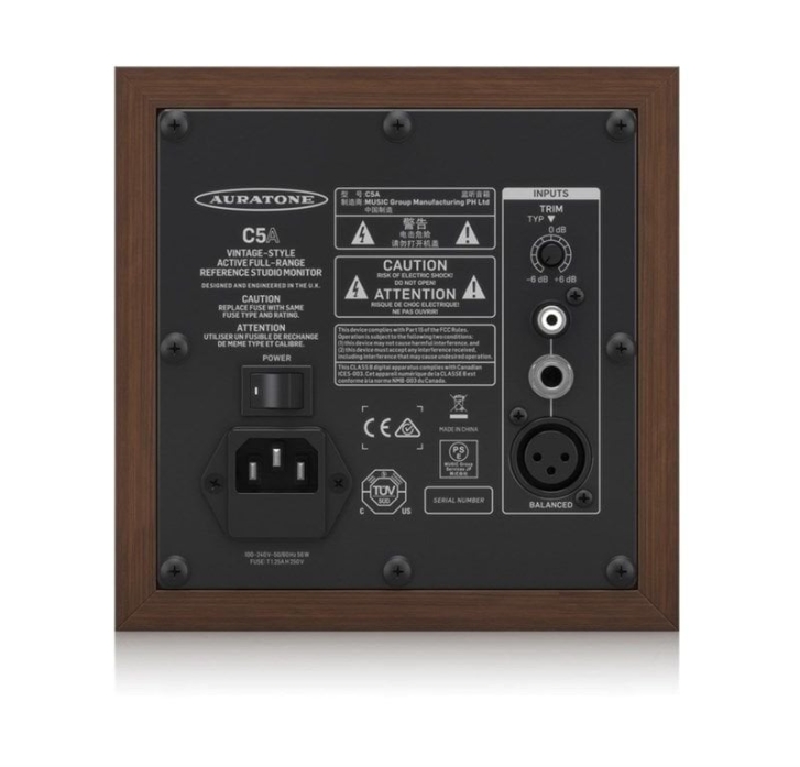 Efsanevi Auratone 5C hoparlöre bir saygı duruşu niteliğindeki C5A, son derece düşük rezonans performansı için hassas şekilde öğütülmüş, yüksek sertlikte MDF'den yapılmıştır ve bu küçük dinamonun neredeyse her stüdyo dekoruna sığmasını sağlayan klasik ahşap damarlı bir laminat içerir. C5A'nız bir masaüstüne yerleştirildiğinde üstün akustik izolasyon için bir neopren ped dahildir veya muhafaza yerleşik 5/8 'adaptör aracılığıyla bir mikrofon sehpasına monte edilebilir.