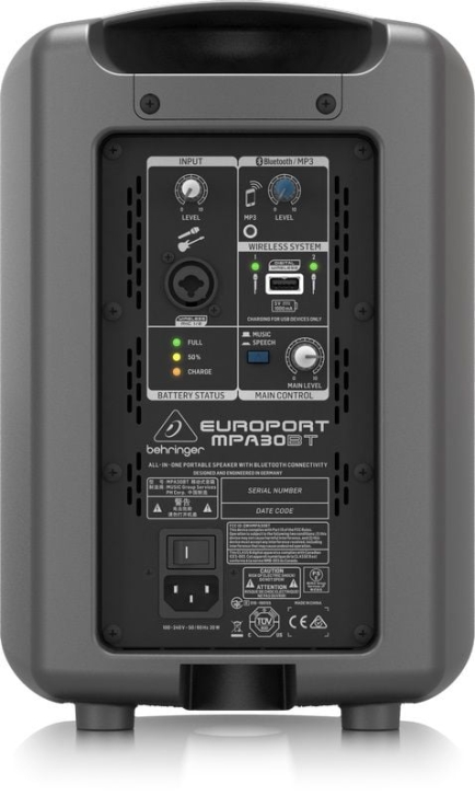 Harika ses veren MPA30BT, yüksek verimli D Sınıfı amplifikatörü sayesinde inanılmaz derecede hafiftir (10,7 lbs / 4,9 kg) ve yerleşik pil paketi, partiyi görünürde bir priz olmadan 20 saate kadar devam ettirir!
