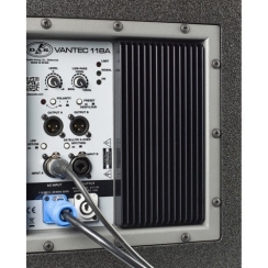 Arka panel, kazanç, polarite ve 80 ila 125 Hz arasında değişen sürekli değişken bir alçak geçiren filtre için kontroller sağlar. İki XLR-1/4' giriş, 100 Hz yüksek geçiş filtresini devreye sokan uydu çıkış anahtarına sahip XLR çıkışlarına sahiptir. Derin/Yüksek EQ anahtarı, Derin ayar ile düşük bir subwoofer tepkisi sağlamak için bas çıkışını uyarlamanıza olanak tanır Yüksek ses ayarı daha yüksek, daha sert bir vuruş tepkisi sunarken Subwoofer, faz tepkisi uyumludur ve harici bir DSP'ye ihtiyaç duymadan hassas hizalama sunar.Vantec-118A, 6 üniteye kadar zincirleme bağlantı için powerCON AC giriş ve çıkışa sahiptir ve bir powerCON güç kablosu içerir.