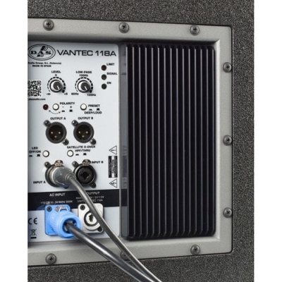 18' D.A.S. Vantec-118A, taşınabilir, çok yönlü ve kullanımı kolay, 2000 W gücünde önden yüklemeli bir subwoofer sistemidir. Herhangi bir hoparlör sisteminin alt sınırını genişletmek için tasarlanmıştır ve Vantec-20A destekli kavisli sistemi tamamlamak için özel olarak tasarlanmıştır. kaynak hat dizisi, tam aralıklı hoparlör Yerleşik DSP işleme ve basit arayüz, çalışan sunucuların, müzisyenlerin, eğitmenlerin, sanatçıların ve A/V sağlayıcılarının hızlı bir şekilde güçlü, temiz ve net ses elde etmesine yardımcı olur.
