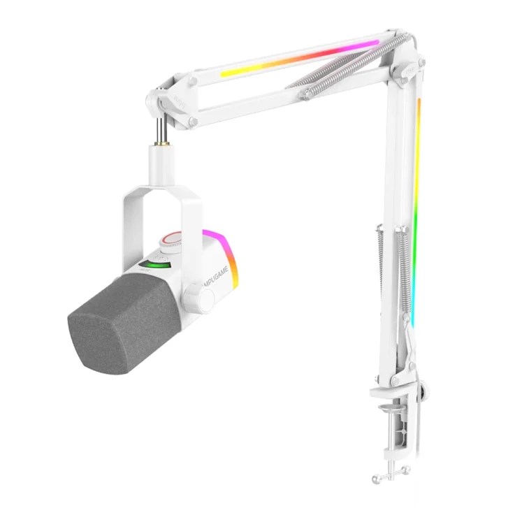 Kutu içeriğindeki RGB Boom Arm Standı, sadece profesyonel ses sağlamakla kalmaz, aynı zamanda 240+ farklı RGB kombinasyonuyla yayınlarınıza görsel bir şölen katar. Mikrofon üzerindeki çok fonksiyonlu paneli, anında ses ayarı ve gerçek zamanlı monitörleme imkanı sunar.