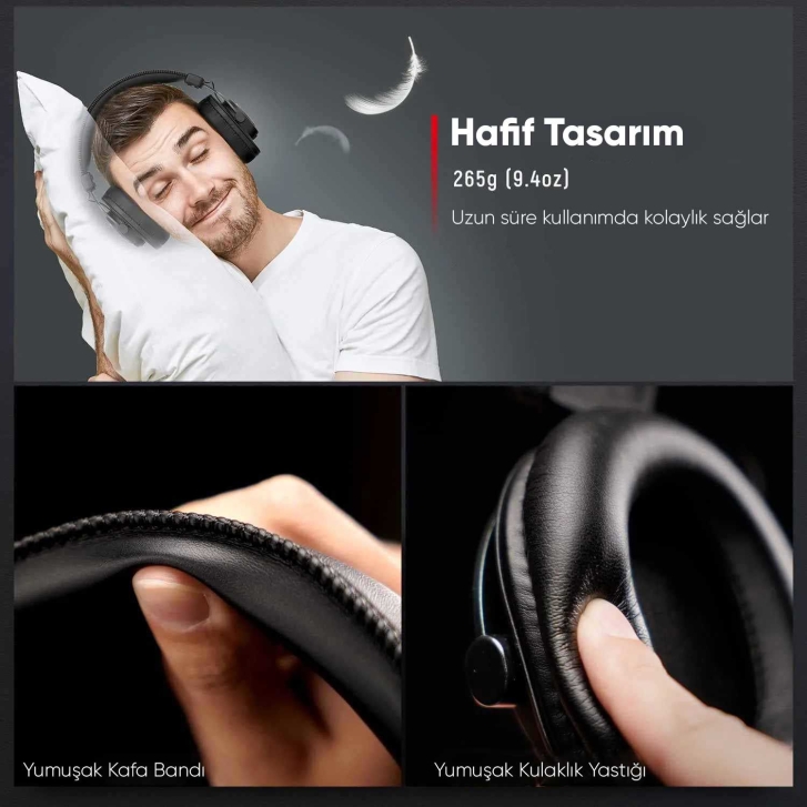 Uzun saatler süren stüdyo veya oyun seansları için konfor her şeydir. Fifine H8'in yumuşak ve nefes alabilir suni deri kulak pedleri, kulağınıza aşırı baskı yapmadan ideal bir kuvvet uygular. Ayarlanabilir kafa bandı ile birleşen hafif yapısı, saatler sonra bile varlığını unutturur.