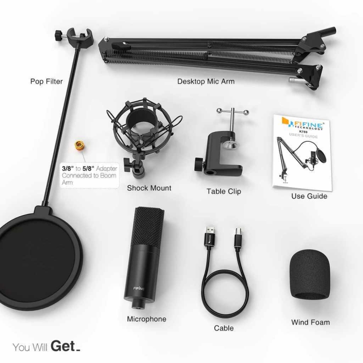 Fifine K780’in mikrofon standı sayesinde mikrofonu her kullanışta ayarlamanıza gerek kalmayacak. Shock Mount ile mikrofonun titremesini engelleyeceksiniz. Pop filtre ile patlayıcı sesler gibi istenmeyen sesleri neredeyse tamamen engelleyebileceksiniz.