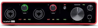 Birçok müzisyen ve prodüktörün sistemlerinin bir parçası olan Scarlett serisi ses kartları tüm enstrümanlarınız için stüdyo kalitesinde ses sunar, ancak 4i4 ses kartı daha fazlasını sunuyor. 4i4 ile devamlı genişleyen sisteminizde daha fazla giriş ve çıkış ile daha çok ses kaydedebilirsiniz. *4 balanslı Line girişi ile Synth veya diğer Line tipi ses sinyali kaynağı bağlayabilir, 4 balanslı çıkış ile monitoring sistemleri ve Effect Send’leri ile bağlantı kurabilirsiniz. *Gitar mikrofonu veya vokal kaydı için segmentinin gördüğü en iyi Scarlett mikrofon preamfileri, Air teknolojisi ile *Elektro veya bas gitar bağlamak için iki yüksek Headroom’lu enstrüman girişi, *Loopback ile Sampling veya internet yayını için donanım üzerinden herhangi bir kombinasyonda kablosuz stereo girişi iletimi