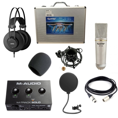 HTDZ Condenser StüdyoMikrofonu + M-Audio SOLO Ses Kartı + AKG K52 Kulaklık + Shock Mount + PopFiltre Profesyonel Stüdyo Paketi