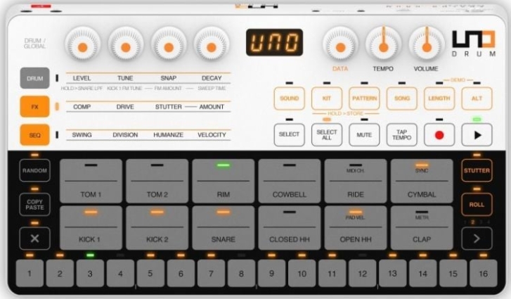 UNO Drum, herkesin sıcak, punchy, kaliteli ve ilham verici beatler yaratabilecekleri en üst düzey ritim oluşturma istasyonudur. İtalyan analog ses uzmanı Soundmachines işbirliğiyle yapılan UNO Drum, büyük analog tonu, dijital esneklik ve rahatlıkla birleştirerek beğeni toplayan UNO Synth'i takip ediyor.