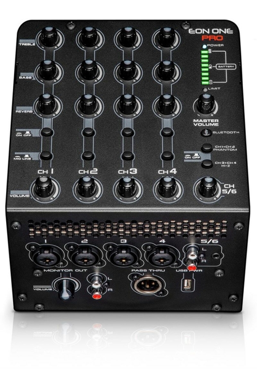 EON ONE PRO’nun modern 7 kanallı mikseri, mükemmel karışım için ihtiyacınız olan girişlere, efektlere ve özelliklere sahiptir. İki Hi-Z girişine takarak elektrikli gitarlar ve diğer enstrümanlardan en iyi sesi alın ve + 48v fantom gücüne sahip profesyonel kondansatör mikrofonların sıcaklığından yararlanın. Dört adet combo ¼ ”/ XLR girişi, 3,5 mm jak ve bir RCA girişi ile neredeyse istediğiniz her şeyi bağlayabilirsiniz. Bas, tiz ve yankı kontrolleri, tonunuzda ince ayar yapmanıza olanak tanır. Daha da büyük bir ses için, geçiş girişine ikinci bir EON ONE PRO bağlayın.