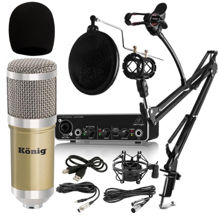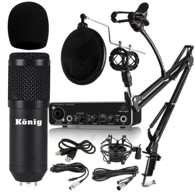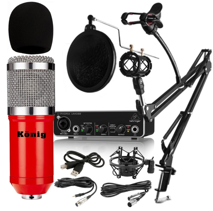 König BM800 Condenser Stüdyo Mikrofonu + Shock Mount + Pop Filtreli Akrobat Sehpa + Behringer UMC22 Profesyonel Yayıncı Paketi Kutu İçeriği