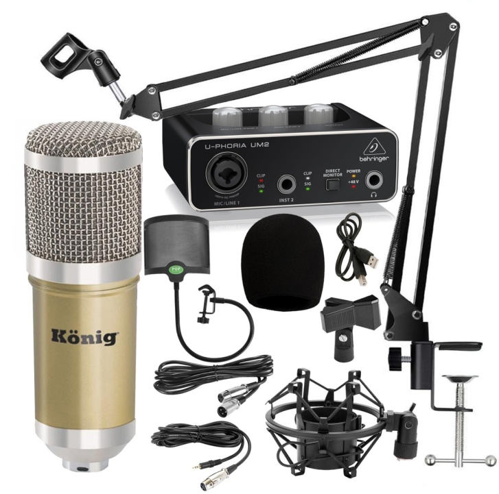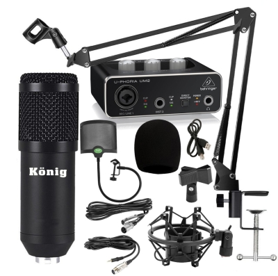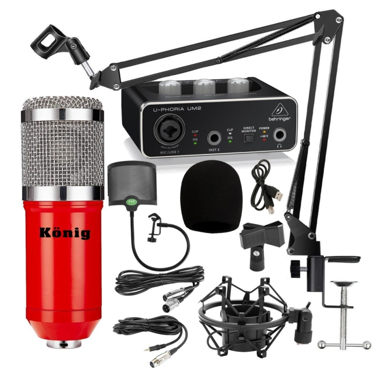 König BM800 Condenser Stüdyo Mikrofonu + Shock Mount + Metal Pop Filtre + Akrobat Sehpa + Behringer UM2 Ses Kartı Kaliteli Twitch Paketi Kutu İçeriği