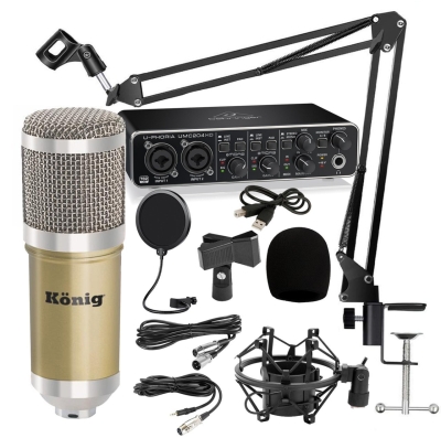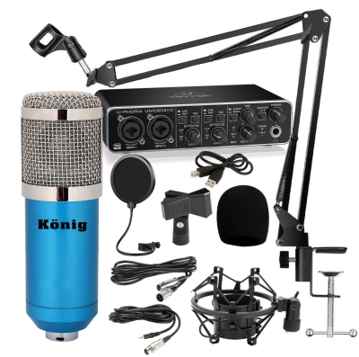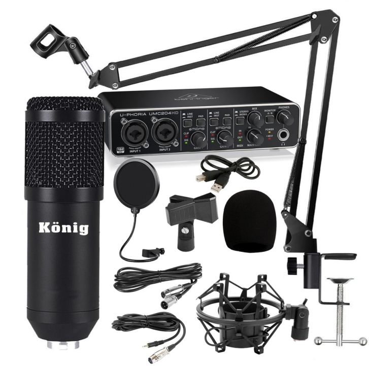 Gelince Haber VerKönig BM800 Condenser StüdyoMikrofonu + Pop Filtre + Akrobat Sehpa + Shock Mount + Behringer UMC204HD Ses Kartı Kaliteli Stüdyo Paketi