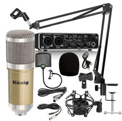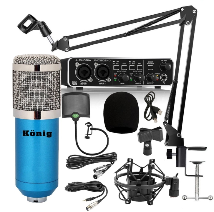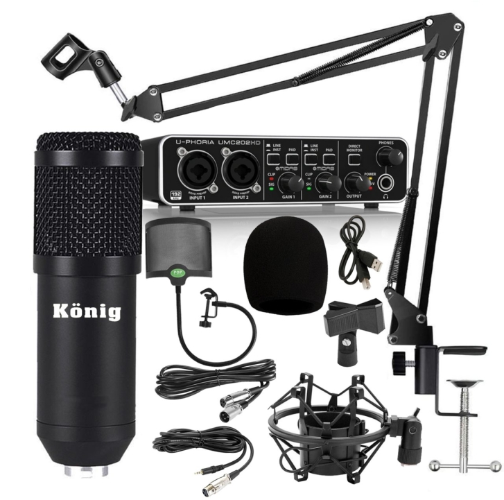 Gelince Haber VerKönig BM800 Condenser StüdyoMikrofonu + Metal Pop Filtre + Akrobat Sehpa + Shock Mount + Behringer UMC202HD Ses Kartı Kaliteli Stüdyo Paketi