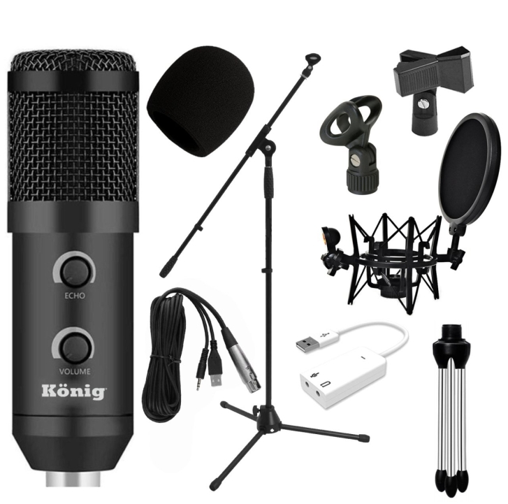 König BM300USB mikrofon kullanıcılara en iyi çözümü en kolay yolla sunan bir condenser mikrofondur. Üzerinde bulunan ses ve echo ayarı ile müzik severlere benzersiz bir deneyim sunan König BM300 Condenser Mikrofon ilk andan itibaren sizi kendine hayran bırakacak. Echo ayarı ile sesinize derinlik ve yankı verip, dilerseniz sesini üzerinde bulunan butonla kısıp açabilirsiniz. Bununla kalmayıp sizler için König BM300 Mikrofonu direkt olarak usb ile bilgisayarınıza takıp çalıştırabilmenizi sağlayan özel üretim bir kablo ile gönderiyoruz. König K-CM300 USB condenser mikrofonu USB girişinden bilgisayarınıza bağlayarak güç almasını sağlayın, ardından mini jack ile mikrofon girişine takın ve son olarak da XLR ucu mikrofona bağlayın. Arkanızı yaslanın ve kalitenin tadını çıkarın. Geniş diyaframı ve içerisinden çıkan tripod sehpası ile youtuber, yayıncı, twitch yayıncısı, içerik üreticisi ve gamer’ların bir numaralı tercihi olan König BM300 mikrofon artık Elit Müzik farkı ile sizlerle.