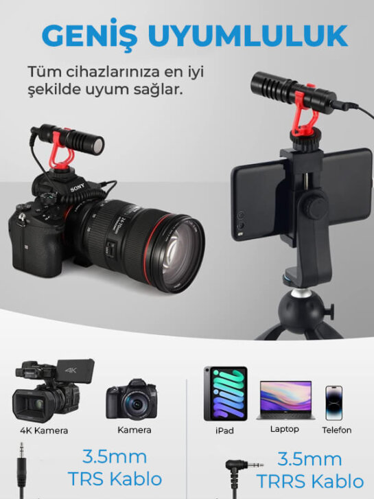 K-CMR100 Shotgun Kayıt Mikrofonu Uyumlu olduğu cihazlar:
