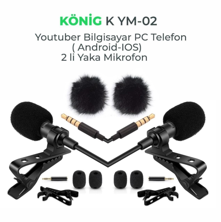 König K-YM02 İkili Üst Seviye Youtuber Yaka Mikrofonu PC ve Telefon İçin