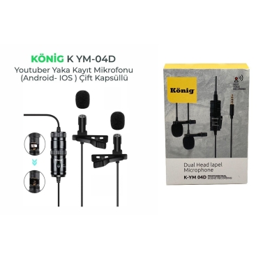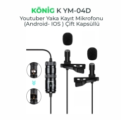 König KYM04D yaka mikrofonu modeli çift mikrofon başlığıyla sayesinde iki farklı noktadan kayıt alma imkanı yaratıyor. Podcast ve Vlog çalışmalarınızda sorunsuz ve kaliteli bir şekilde kayıt almanız için bütün imkanları sağlayan König KYM04D uygun fiyatı ve mükemmel performansıyla sizi etkileyecektir.