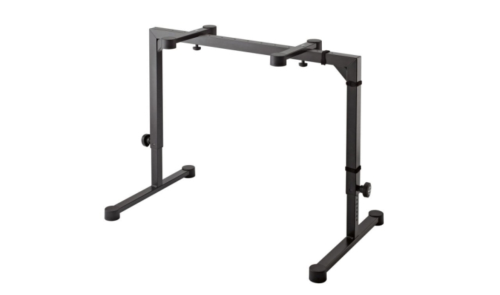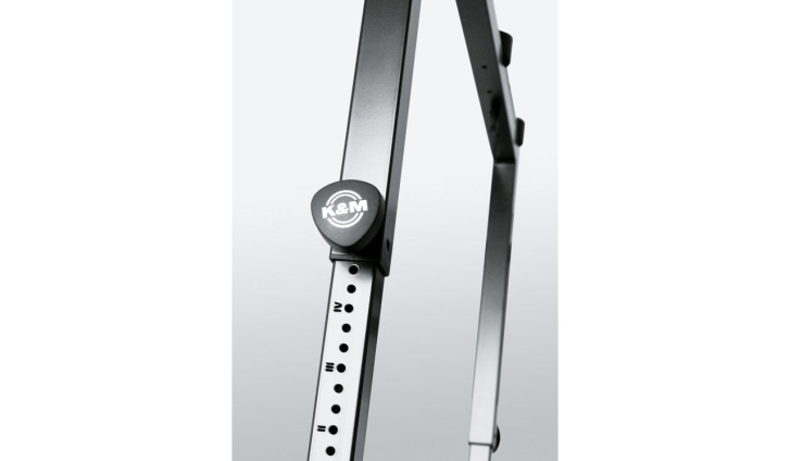 Kalın çelik konstrüksiyon ve yuvarlak zemin ayakları bu çekici keyboard sehpasını çok daha fazla dengeli hale getirmektedir. Taşıma kolları keyboard'un boyuna göre ayarlanabilir. Katlandığında bu sehpa inanılmaz şekilde kompakt hale gelmektedir. Opsiyonel olarak alınabilen 18813 ile ikinci bir keyboard veya notebook kullanılabilir.