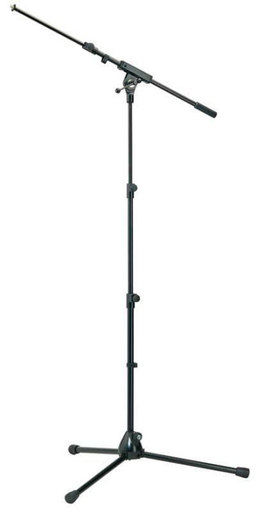 Üç parçalı teleskopik şaftlı mikrofon ayağı. Metal, ayağa zarar vermeyen yükseklik ayarı mekanizması, boom arm ile birlikte