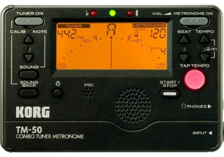 Korg TM50, aynı anda veya birbirinden bağımsız olarak hem akort cihazı, hem de metronom olarak kullanılabilen bir ürün olarak, yeni tasarıma sahip iğne tipi metrajlı LCD ekrana sahiptir. C1'den C8'e geniş bir algılama aralığına sahiptir. Sound Out fonksiyonu sayesinde harici hoparlörden üç oktav aralığında bir referans ses çıkarabilir. Bunun yanında Sound Back fonksiyonu ile giriş sesine en yakın referans tonunu verirken, bir yandan da ekranda referans tonu ve giriş sesi arasındaki farkı göstererek kulak eğitimine yardımcı olur. Kalibrasyon belli bir aralıkta konser pitch'ini desteklemektedir. Saf majör ve saf minör aralıkları algılar ve gösterir. Dakika başına 30-252 gibi geniş bir tempo aralığına sahiptir. 15 ritm varyasyonu ile geniş yelpazede müzikal tarz çalışabilme olanağı verir. İki türde tempo adım örneği ve tap tempo fonksiyonuna sahip kolay tempo ayarları bulunur. Büyük LCD ekran ışığının parlaklığı, daha net gösterim için iki seviyede ayarlanabilir. Hafif ve taşınabilir olan kasasının siyah ve inci beyazı olmak üzere iki rengi bulunmaktadır. Kullanım kolaylığı için yeni tasarım ayak ve pil kapağı eklenmiştir. Memory Backup fonksiyonu ile pek çok ayarı hafızada tutabilirken, Auto Power Off ile belli bir süre kullanılmadığında pilden tasarruf için otomatik olarak kapanır.