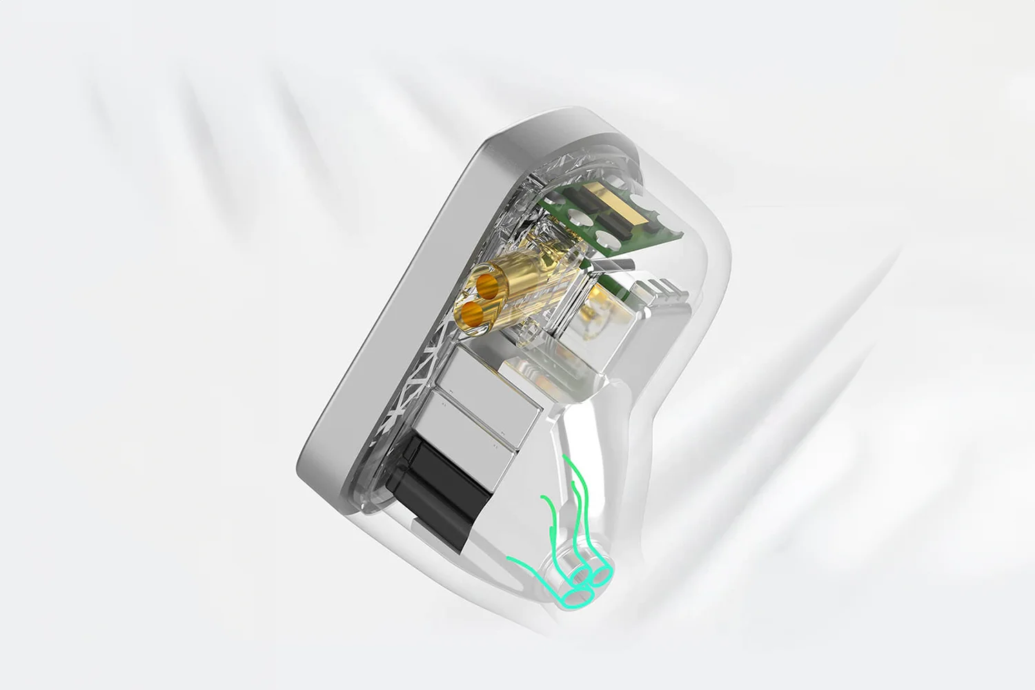 Yüksek hassasiyetli 3D baskı teknolojisiyle üretilen üç kanallı profesyonel akustik yapı, her sürücü grubundan gelen sesin birbirine karışmasını engeller. Düşük, orta ve yüksek frekanslar için ayrı ses tüpleri, her notanın en temiz ve en doğru şekilde kulağınıza ulaşmasını garanti eder. Bu, stüdyo monitörlerinde aranan en önemli özelliklerden biridir.