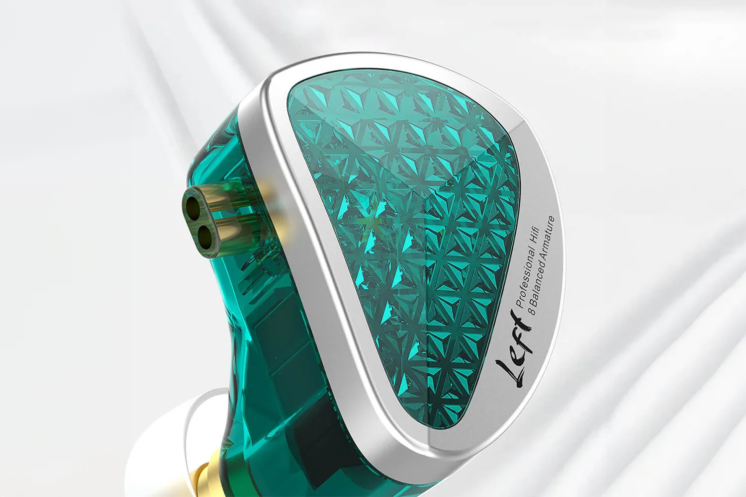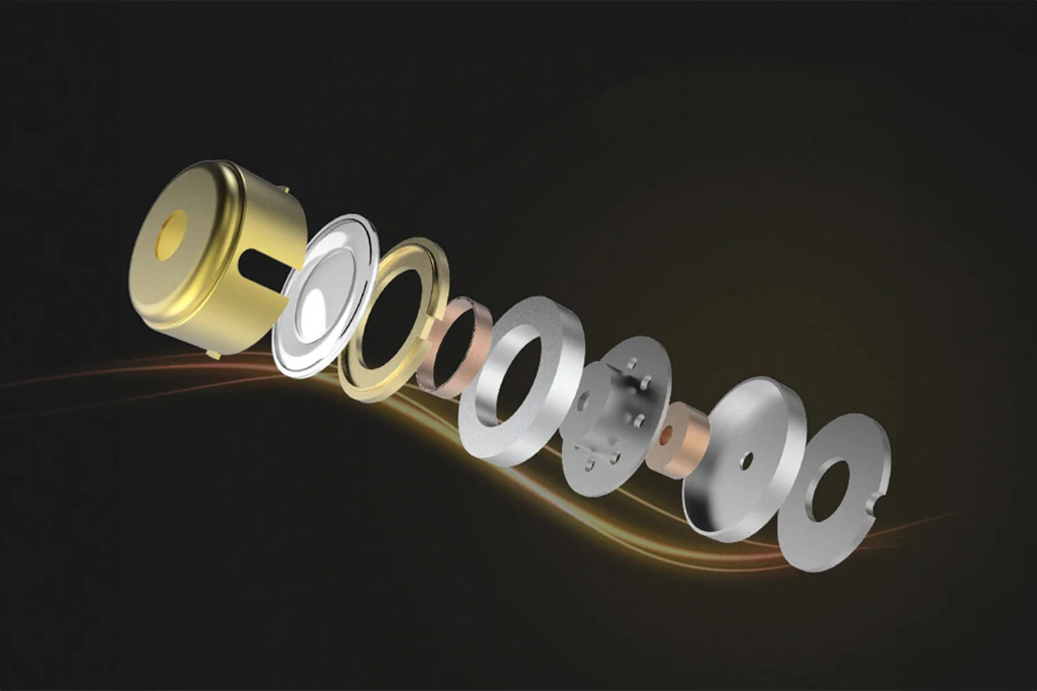 Elmas tıraşlama tekniğiyle işlenmiş çinko alaşımlı metal kapak, ışığı yansıtan göz alıcı bir tasarıma sahiptir. Metal ve şeffaf reçinenin birleştiği laminasyon teknolojisi, hem estetik bir bütünlük sunar hem de kulaklığın dayanıklılığını artırır.
