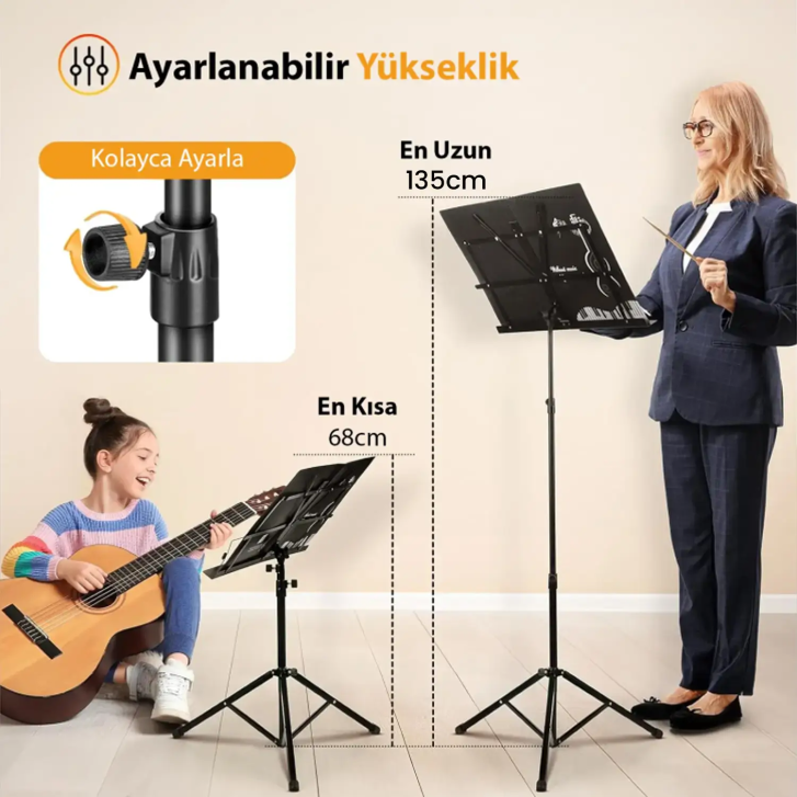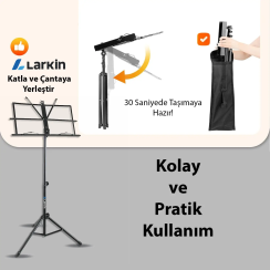 Larkin NS05, hem profesyonel müzisyenler hem de müziğe yeni başlayanlar için tasarlanmış, katlanabilir ve sağlam bir nota sehpasıdır. Ergonomik tasarımı, ayarlanabilir yapısı ve kolay taşınabilirliği sayesinde provalarda, sahnede veya evde pratik yaparken notalarınıza her zaman en rahat açıdan bakmanızı sağlar.