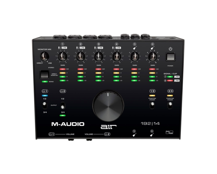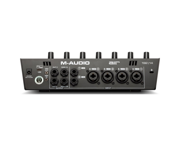 Her türlü kayıt ihtiyacınızı karşılayacak, zengin özellikli, profesyonel stüdyo kalitesinde ses kartı AIR 192|14 ile kullanımı son derece kolay bir arabirim üzerinden kusursuz 24-bit/196 kHz'lik stüdyo kalitesinde kayıtlar alabilirsiniz. Profesyonel seviyede, çekici bir metal şase ve büyük bir ses seviyesi kontrol düğmesi ile AIR 192|14 M-Audio'nun özel Crystal™ düşük gürültülü pre-amplifikatörleri ve sınıfındaki en yüksek ses performansını sunan A/D dönüştürücülere sahiptir. AIR192-14 üzerinde 4 adet XLR+1/4” TRS combo giriş, 2 adet ¼” line giriş ve gitar ile bass gitarların en iyi şekilde kaydedilmesini sağlayan özel tasarlanmış empedans katına sahip 2 adet yepyeni ¼” enstrüman girişine sahiptir. AIR192-14 üzerinde bir çift ¼” ana çıkış ve iki adet ¼” atanabilir çıkış bulunmaktadır.