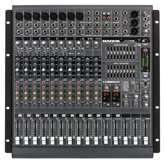Mackie PPM1012 12-Channel Professional Powered Mixer, pasif hoparlörlere güçlü 1600 W (tepe) sağlayan iki dahili amplifikatöre sahiptir. Mikser, C300 veya S215 modelleri gibi Mackie pasif hoparlörlerle mükemmel bir uyum sağlar.