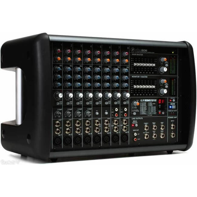 Mackie PPM608 8-Channel Professional Powered Mixer, pasif hoparlörlere güçlü 1000 W (tepe) sağlayan iki dahili amplifikatöre sahiptir. Mikser, C300 veya S215 modelleri gibi Mackie pasif hoparlörlerle mükemmel bir uyum sağlar.