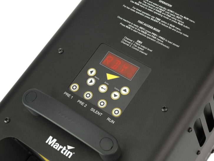 Martin JEM Hazer Pro, son derece zorlu profesyonel pazar için tasarlanmış, su bazlı pus makinesinin en iyisidir. Düşük gürültü seviyelerinde çalışırken kısa sürede olağanüstü derecede ince atmosferik pus üretme yeteneği, onu kiralık evler, orta ila büyük gösteriler, tiyatrolar, stüdyolar, kulüpler, barlar, yolcu gemileri, eğlence parkları ve daha fazlası için ideal bir seçim haline getirir. Sağlam ancak küçük ve hafif olan JEM Hazer Pro, günümüzün yüksek tanımlı ışık ışınlarını vurgulamak için mükemmel küçük parçacık bulanıklığı olan üstün optik netlik ve yansıtma özelliğiyle eşit, sürekli bir bulanıklığı dağıtma yeteneğine sahiptir. Yüksek verimli JEM C-Plus Haze sıvısı, JEM Hazer Pro için geliştirildi ve dolu bir hazne, yeniden doldurma gerekmeden önce 65 saate kadar çalışma süresi sağlayabilir.