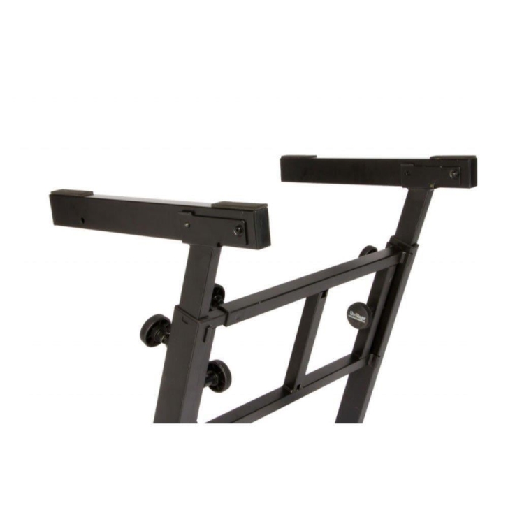 Z-çerçeve şekli, standı 180 derece çevirerek her iki taraftan da çalabilmeyi sağlar Ana ayak, rahat bir çalım pozisyonu sağlamak için yüksekliği ayarlar şekilde yapılmıştır. Orta kiriş uzunluğu ayarlanır ve güvenilir klavye desteği için çerçeveyi güçlendirir. Verimli depolama ve nakliye için birbirine kilitlenen parçalara ayrılır. Uygulama : Klavyeler, Org,DJ donanımları ve mixerler Yapısal Boru 1' x 2' Merkez Kutu Borusu 3/4' Teleskop Genişlik Ayarı (dış) 22' - 34' Teleskop Genişlik Ayarı (iç) 20' - 32' Kol Derinliği 16.5' Malzeme : Kaynaklı metal Ağırlık Kapasitesi 375 lbs Yükseklik Ayarı 23,5' - 36,5' Siyah renktedir. Kompakt KS7350 Folding-Z Klavye Standımız, ağır geniş formatlı klavyeler, mikserler veya DJ ekipmanları için geniş, sabit bir taban ve kaymaz destek sağlar. Bu çok yönlü klavye sehpası, çeşitli klavye boyutlarına ve çalma tarzlarına uyacak şekilde bağımsız yükseklik ve uzunluk ayarlamaları sağlar. Tüm stand, uygun depolama ve taşıma için düz katlanır.