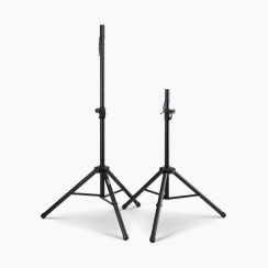 SSP7750 Kompakt Hoparlör Stand Paketimiz, ayrı stantlarda iki hoparlörü desteklemek için gereken her şeyle birlikte gelir. Hafif ve kompakt olan bu standlar, daha küçük hoparlörler kullanan portatif PA teçhizatlarını tamamlar. Tüm standart hoparlör kabini montaj soketlerini destekleyen çok yönlü bir uyarlanabilir direğe sahip olan standlar, çeşitli uygulamalara uyum sağlamak için yükseklik olarak da ayarlanır. Ağır hizmet tipi yapı, çaprazlı tabanlar ve kaymaz ayaklar, düzensiz yüzeylerde bile olağanüstü stabilite ve yük dengesi sağlamak için birlikte çalışır. Dayanıklı siyah kaplama, her alanın profesyonel görünümünü korur. Rahat saklama ve ergonomik taşıma için, tripod tabanları düz bir şekilde katlanır ve tüm bileşenler birlikte verilen omuz askılı ve üst tutamaçlı bir taşıma çantasına sığar.