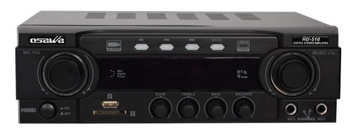 Osawa 100W USB-SD 2 Mikrafon Girişli Stereo Mixer Anfi HD-510