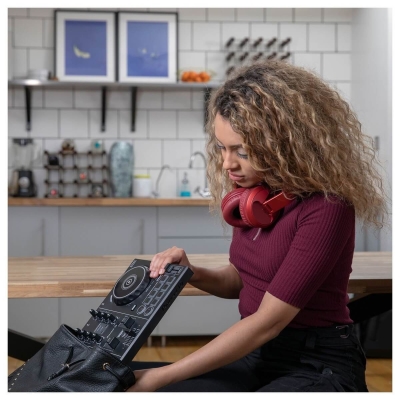 DDJ-200 hafif ve taşınabilirdir. Hoparlörleri evde bırakın ve akıllı telefonunuzdan, tabletinizden veya PC / Mac'inizin ses çıkışlarından ses çalın. Kullanışlı bir çıkış yok mu? Sorun değil. Denetleyiciye harici bir pil ile güç sağlayın. DDJ-200 Sıralı Senkronizasyon özelliği 2 parçanın konumunu analiz eder ve hizalar. Sonuç olarak, melodiler arasında geçiş yaptığınızda doğal gelecektir. Herkes ana sesi hoparlörlerden duysa da, kulaklıklarınızdaki bir sonraki parçayı dinleyecek ve işaretleyeceksiniz. Sesi ayırmak için bölünmüş kabloları takmanız yeterlidir. Bu ürünle rekordbox kullanabilirsiniz - aboneliğinizi yükseltmenize gerek yoktur. PC / Mac'inize bağlanın ve DJ'lik yapmaya başlayın.