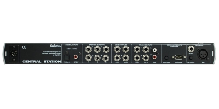 Central Station, dijital stüdyolara yönelik hazırlanmış, stüdyo monitoring sisteminizi kontrol etme kolaylığı sağlayan bir kontrol istasyon arabirimidir. Arka panelde bulunan 3 adet analog stereo girişin ikisi balanslı TRS, diğeri de RCA konektörlüdür. Analog girişlerin yanısıra, 24bit/192 kHz hassasiyette, S/PDIF ve TOSLINK girişler de mevcuttur. Output Section'da, A, B ve C şeklinde seçebileceğiniz 3 adet stereo çıkış ile kulaklık amfilerine gönderme yapabileceğiniz CUE çıkışının yanısıra, MAIN LINE çıkışı da bulunmaktadır. Birlikte gelen Remote Control ünitesi, Central Station'a DB15 konektör üzerinden bağlanmaktadır. Ünitede VOLUME, TALKBACK, MUTE, input source ve hoparlör seçimi için kontroller bulunmaktadır.