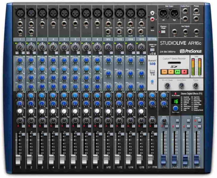 AR16c'nin klasik analog mikser görünümü sizi yanıltmasın, StudioLive® AR16c kayıt yapmak için tasarlanmıştır. 8 adet yüksek kazançlı, berrak XMAX mikrofon preamlifikatörlü analog giriş katı, 14x14, 24-bit/96kHz, USB-C uyumlu USB 2.0 ses kartı ile AR16c'nin hibrit yapısı miks ve kayıt yapmayı çok kolay hale getirmektedir. Bunlara son derece müzikal 3-band analog EQ, vintage synth'ler gibi düşük çıkışlı cihazlar için ideal seviye güçlendirici mic/line boost seçeneği, zengin reverbler içeren yepyeni efekt katı, Bluetooth bağlantı ve stereo SD kayıt katı eklendiğinde AR16c günümüzün modern müzisyenleri ve içerik yaratıcılarının tüm ihtiyaçlarına cevap verebilecek kapasitededir.