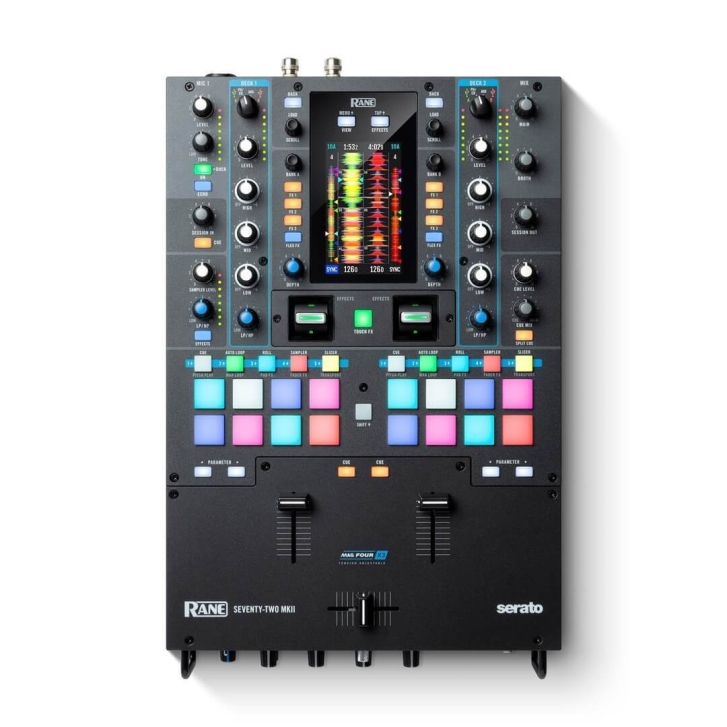 RANE Seventy-Two MKII, Serato DJ Pro yazılımının tüm kreatif gücünü ortaya çıkaran 2-kanal, gelişmiş kontrol ve performans mikseridir. Seventy-Two MKII Pro, Club ve Scratch DJ/Turntablistlerin ufuklarını ve imkanlarını eşi görülmemiş bir şekilde genişleten performans özelliklerine sahiptir: Tüm kritik performans fonksiyonlarını görebileceğiniz renkli dokunmatik ekran, üst üste kullanılabilenedilebilen Serato ve Flex FX, MAG FOUR faderlar, dahili ve harici tension ayar kontrolleri, anında duble'ler için özel parametre kontrolü, sessiz cue ve sync, çift DVS giriş ve 16 çok fonksiyonlu pad ile benzersiz playback kontrol.RANE'in bu yepyeni performans mikseri ile performanınızı daha da ileriye taşıyın.
