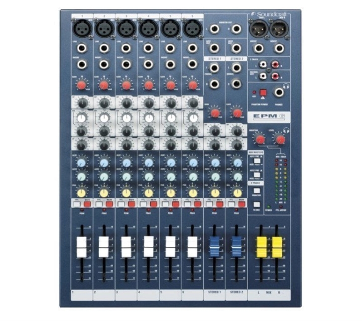 Soundcraft EPM6 8 Kanal Analog Mikser inin vurgusu, gereksiz tesisler tarafından derli toplu bir şekilde kontrol edilemeyen kolay anlaşılır