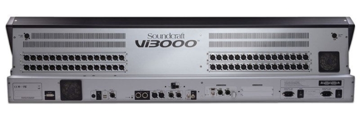 Soundcraft Vi3000, kapsamlı arka panel bağlantısı sunar. Konsol, analog ve dijital giriş ve çıkışların tam bir tamamlamasına ek olarak, MIDI, USB, Ethernet, DVI çıkışı, Dante / MADI kayıt besleme çıkışları, yedek güç kaynağı ve diğer bağlantıları sağlar. Vi3000, birden fazla Soundcraft Stagebox giriş genişletme modülünü bağlamak için MADI Stagebox kartları ile takılabilen iki genişletme yuvasına sahiptir. Vi3000, 74 endüstri standardı UAD eklentisine erişim sağlayan eklenti üreticisi Universal Audio ile işbirliği içinde tasarlanmış bir donanım / yazılım birimi olan yeni Soundcraft Realtime Rack'i de barındırabilir. Vi3000, Dante özellikli cihazlarla sorunsuz dijital ses ağı oluşturmak için standart olarak bir Dante arayüzü içeren ilk Soundcraft konsoludur.
