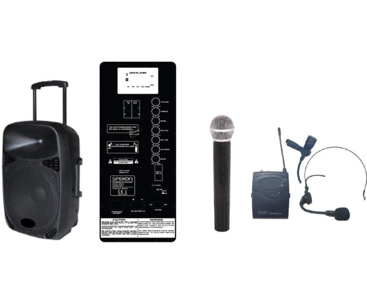 Spekon Mob 12 - 12 inç 120W USB-BT Şarjlı Ses Sistemi - EL + Yaka