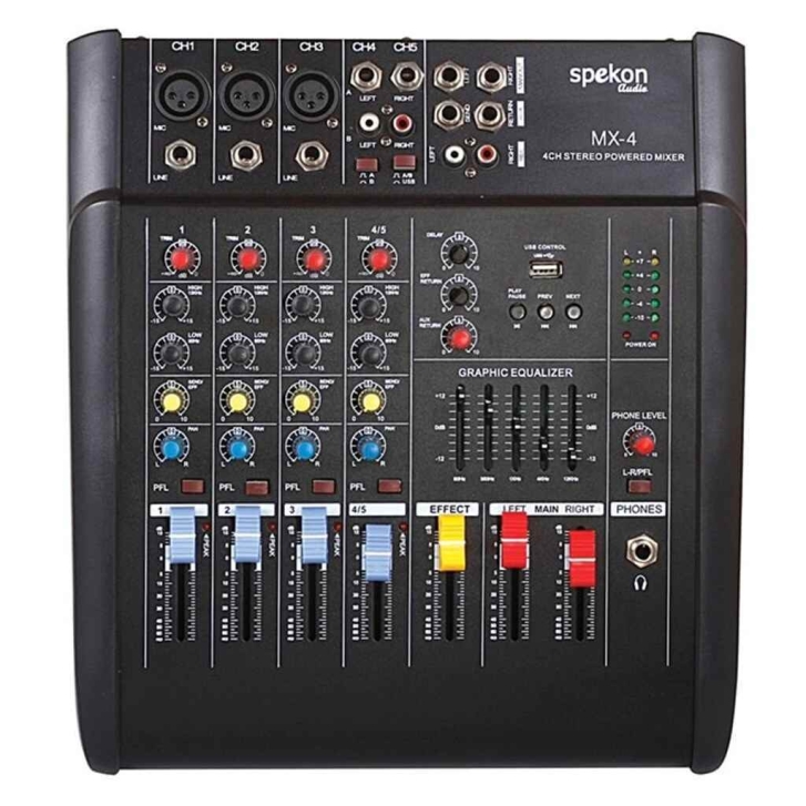 spekon mx-4b 2x100v power mikser amfi uygun fiyatlarla elitmuzik.com.tr stoklarında.
