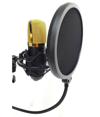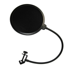 Stüdyo vokal ses kayıt ve radyo / tv yayınları için bez mikrofon pop filtresi, 15 cm çember çapı, 36 cm spiral boyu, metal tutma aparatı.